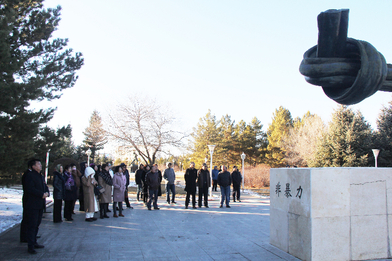 在全院上下深入开展“不忘初心、牢记使命”主题教育之际,10月31日下午,学院机关党总支举办主题党日活动,全体党员来到海拉尔爱国主义教育基地——和平公园参观学习。